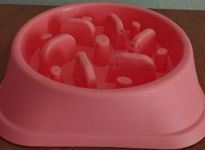 数秒で食べ終わる早食いの犬には、こういった早食い防止の食器もあり、我が家でも愛用しています。