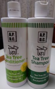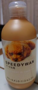 ペットショップでの取り扱いも多い「A.P.D.C.」の自然派シャンプーとリンスです。香りも良く、持続します。こちらもお湯で10倍位に薄めて使うのに100均のドレッシング容器が活躍してくれます。